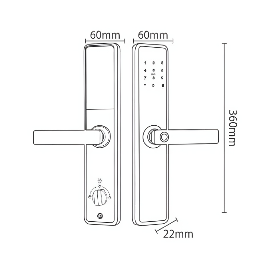 Kích thước thân khóa ngoài: R60 x C360 x D22 mm