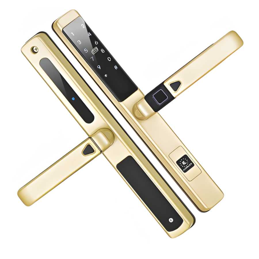 Khoá vân tay Kassler KL-599 CNC 01: Dành cho cửa nhôm/kính. Mở bằng Vân tay/Face ID/App/Mã số/Thẻ từ. Thiết kế Champagne Gold sang trọng, bảo mật đa năng.