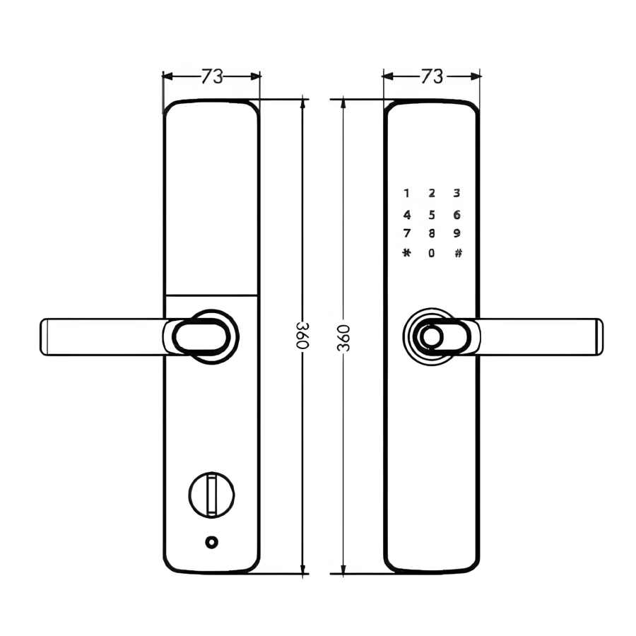Kích thước thân khóa ngoài: R 73× C 380× D 26 mm.