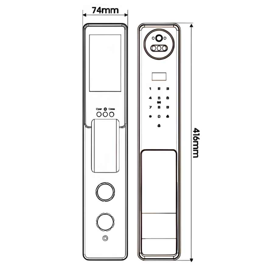Bảo mật Sinh trắc học đa cấp: Khóa tích hợp ba công nghệ sinh trắc học cao cấp: Nhận diện Khuôn mặt 3D (Face ID), Nhận diện lòng bàn tay và Vân tay, giúp mở khóa không cần chạm và đảm bảo an ninh tuyệt đối.