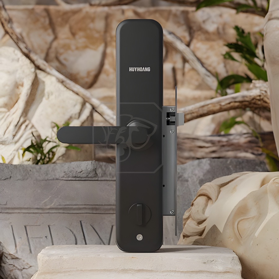 Khóa vân tay Huy Hoàng TNHD10: Mở bằng Vân tay/Mã số/Thẻ từ/Chìa cơ. Thiết kế hiện đại, thân khóa cơ hoàn toàn, chống lỗi điện, bền bỉ cho cửa gỗ.