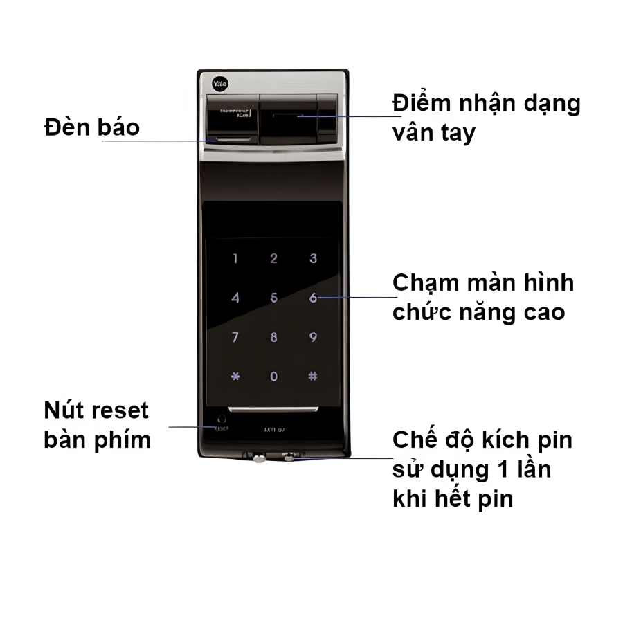 Tiện ích: Hỗ trợ Hướng dẫn bằng giọng nói (tiếng anh). Khóa có cảnh báo pin yếu trước 1 tuần và pin phụ sạc ngoài trong trường hợp khẩn cấp.
