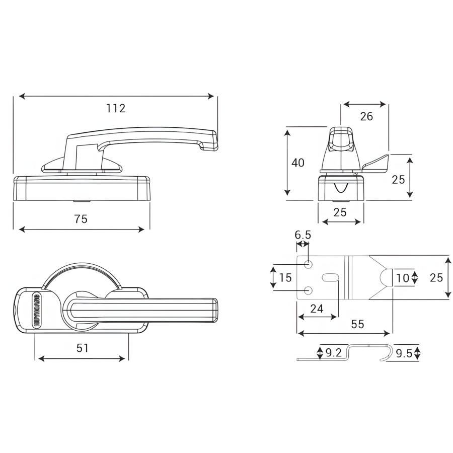 Khóa sò Huy Hoàng AP 01 hệ 55 sơn đen, thiết kế nhỏ gọn, bền chắc, phù hợp cho cửa nhôm hệ 55, đảm bảo an toàn và tính thẩm mỹ cao.