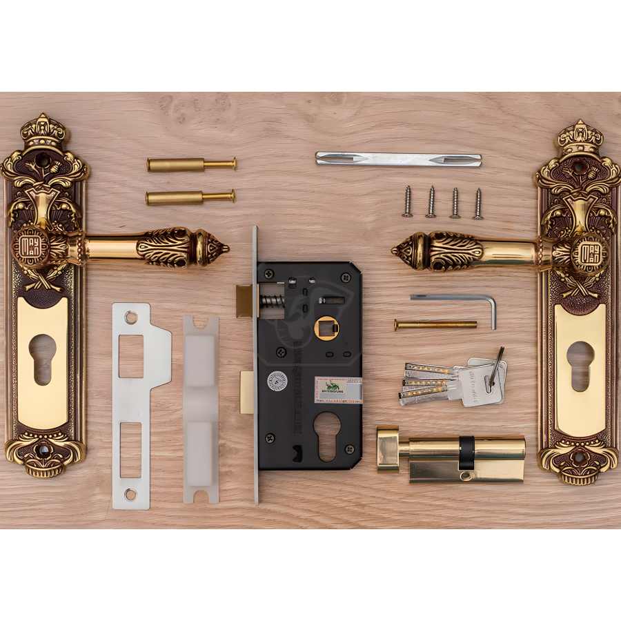Chất liệu Đồng Thau Sang Trọng: Tay ốp khóa được sản xuất bằng đồng vàng (đồng thau), mang lại vẻ ngoài ấn tượng, sang trọng và khả năng chống ăn mòn tốt.