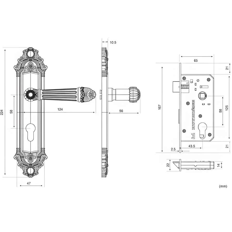 Chất liệu: Đồng thau (Tay ốp, Then khóa), Thân Inox/Thép mạ Zn.