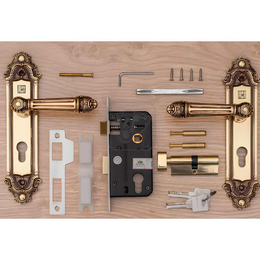 Chất liệu Đồng Thau Sang Trọng: Tay ốp khóa được sản xuất bằng đồng vàng (đồng thau), mang lại vẻ ngoài ấn tượng, sang trọng và khả năng chống ăn mòn tốt.