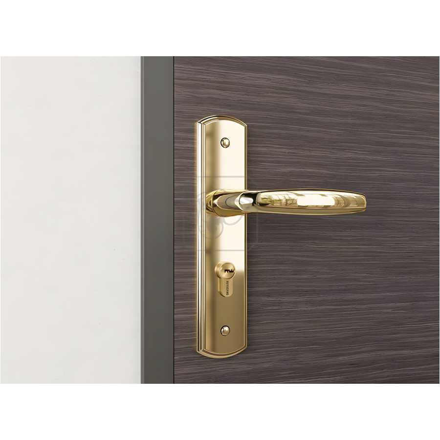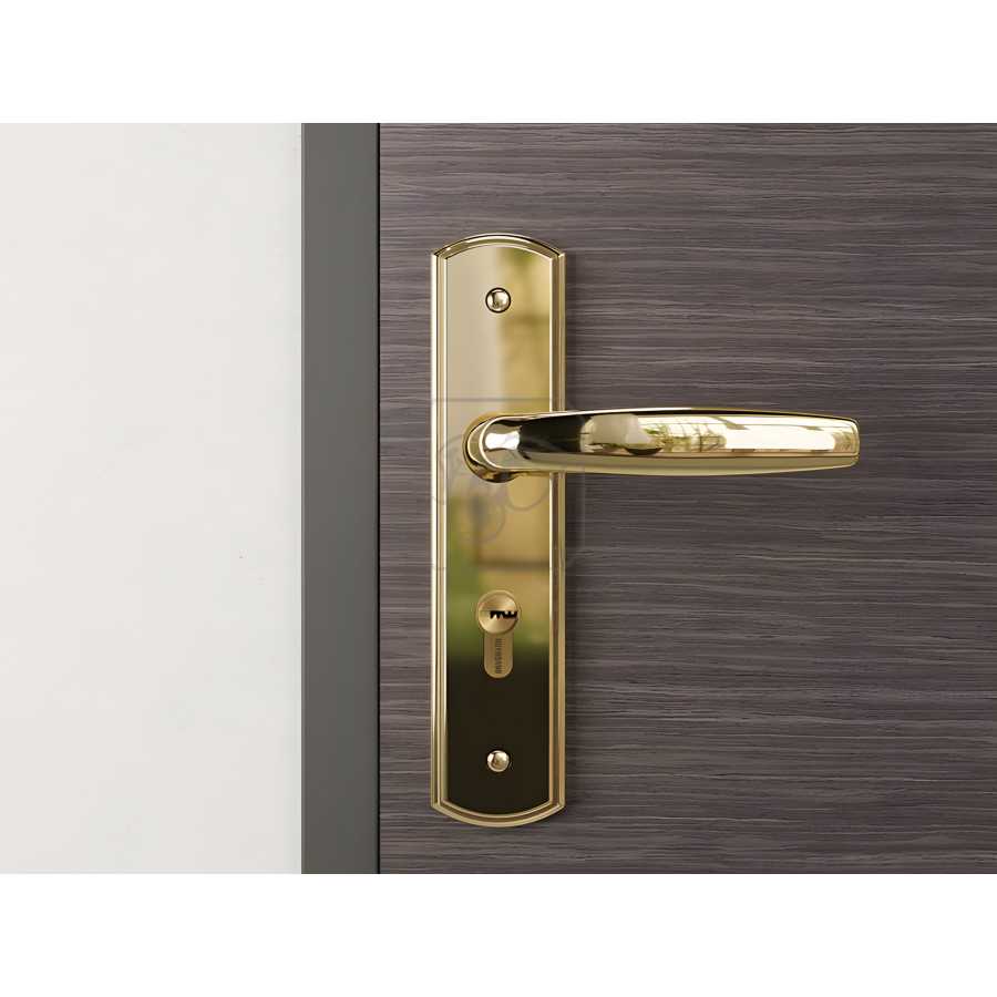 Chất liệu Đồng Thau Mạ PVD Đẳng Cấp: Tay ốp khóa được sản xuất bằng đồng vàng (đồng thau) và mạ PVD màu vàng gold cao cấp. Lớp mạ PVD (Physical Vapor Deposition) này mang lại vẻ ngoài ấn tượng, sang trọng và khả năng chống oxy hóa, chống phai màu theo thời gian.