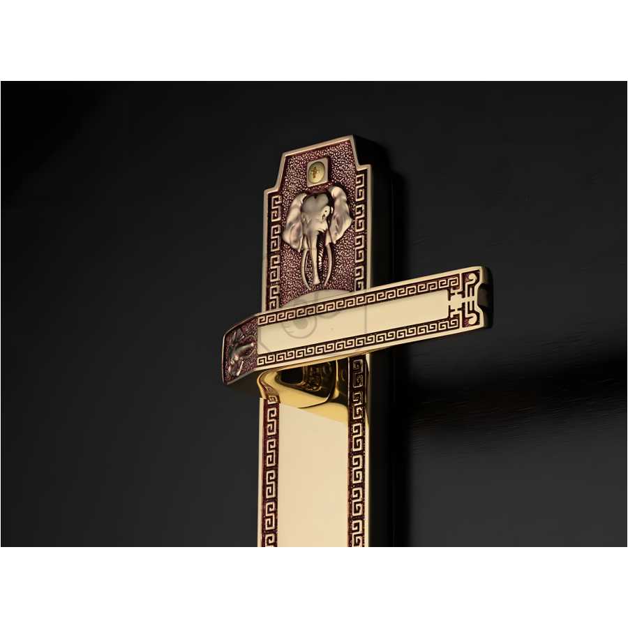Chất liệu Đồng Thau Sang Trọng: Tay ốp khóa được sản xuất bằng đồng vàng (đồng thau), mang lại vẻ ngoài ấn tượng, sang trọng và khả năng chống ăn mòn tốt.