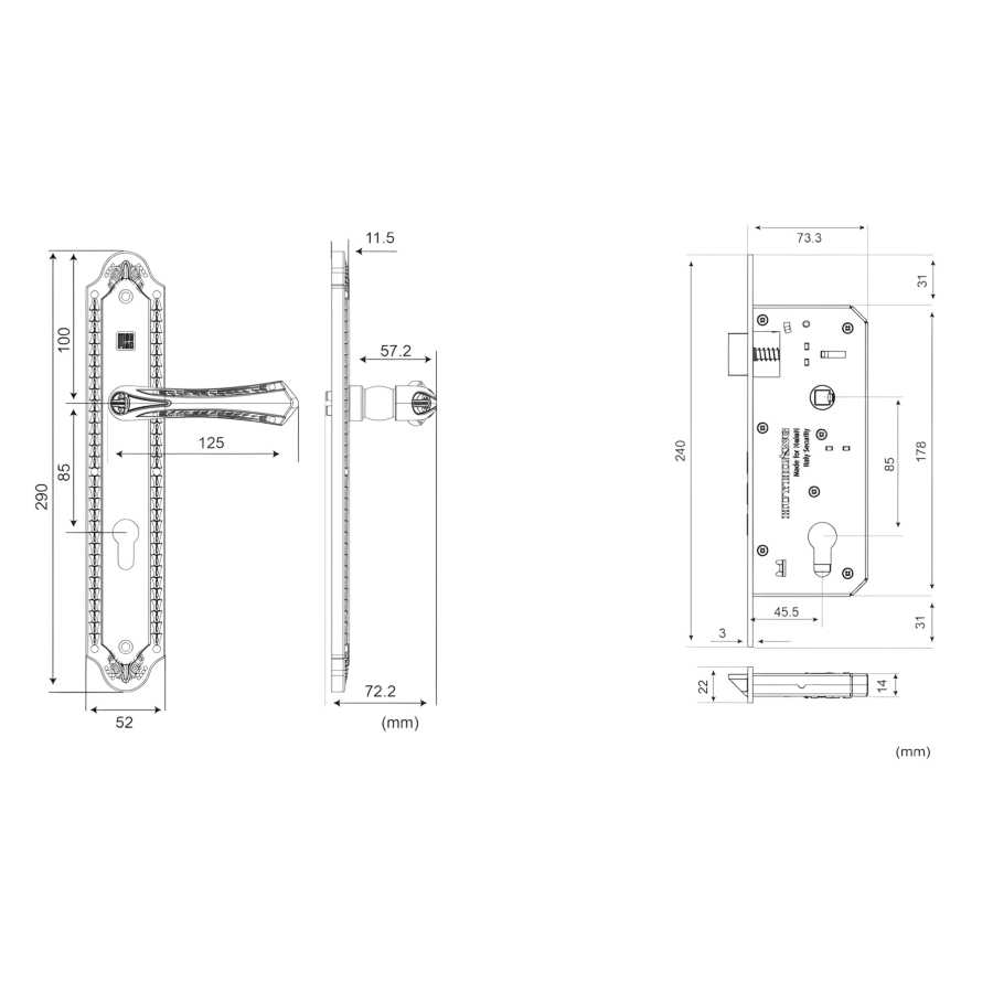 Bản Vẽ Khóa Tay Nắm Cửa Huy Hoàng HC 8561 PVD Gold
