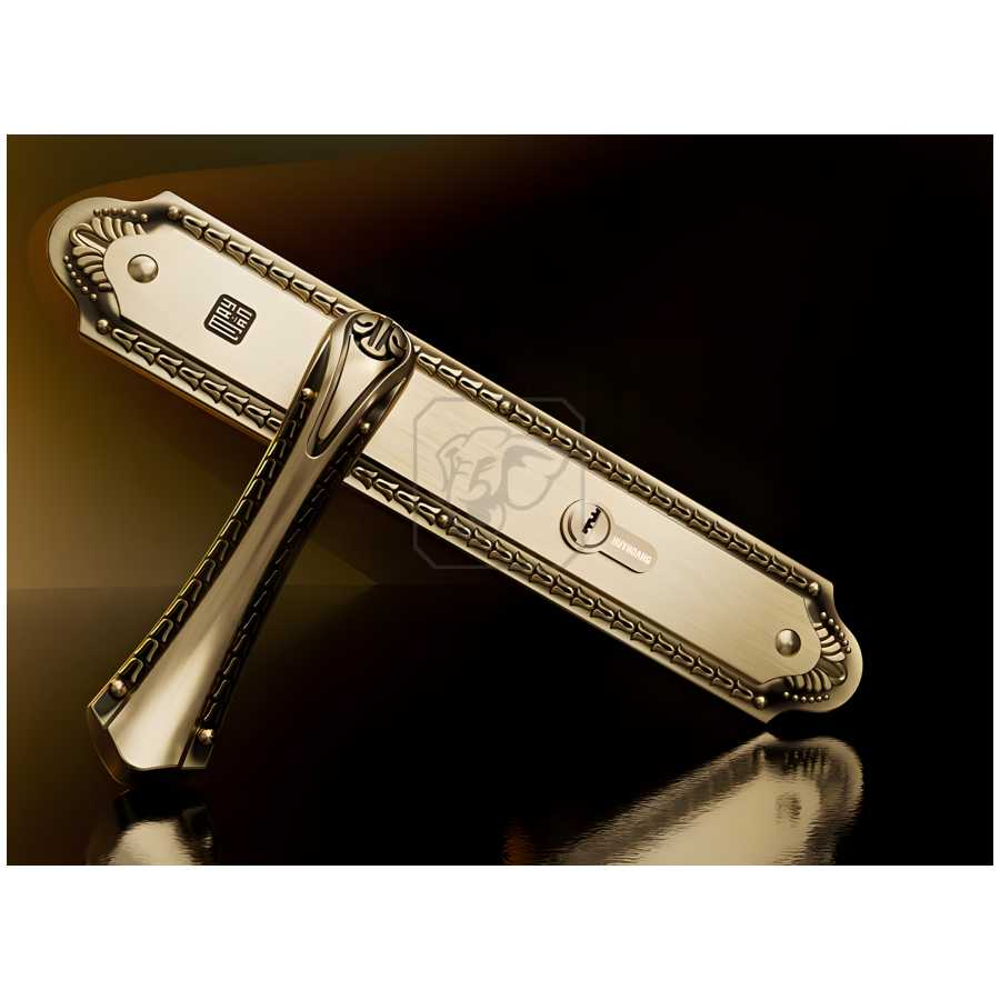 Chất liệu Đồng Thau Sang Trọng: Tay ốp khóa được sản xuất bằng đồng vàng (đồng thau) và xử lý bề mặt tạo xước, mang lại vẻ ngoài ấn tượng, sang trọng và khả năng chống ăn mòn tốt.