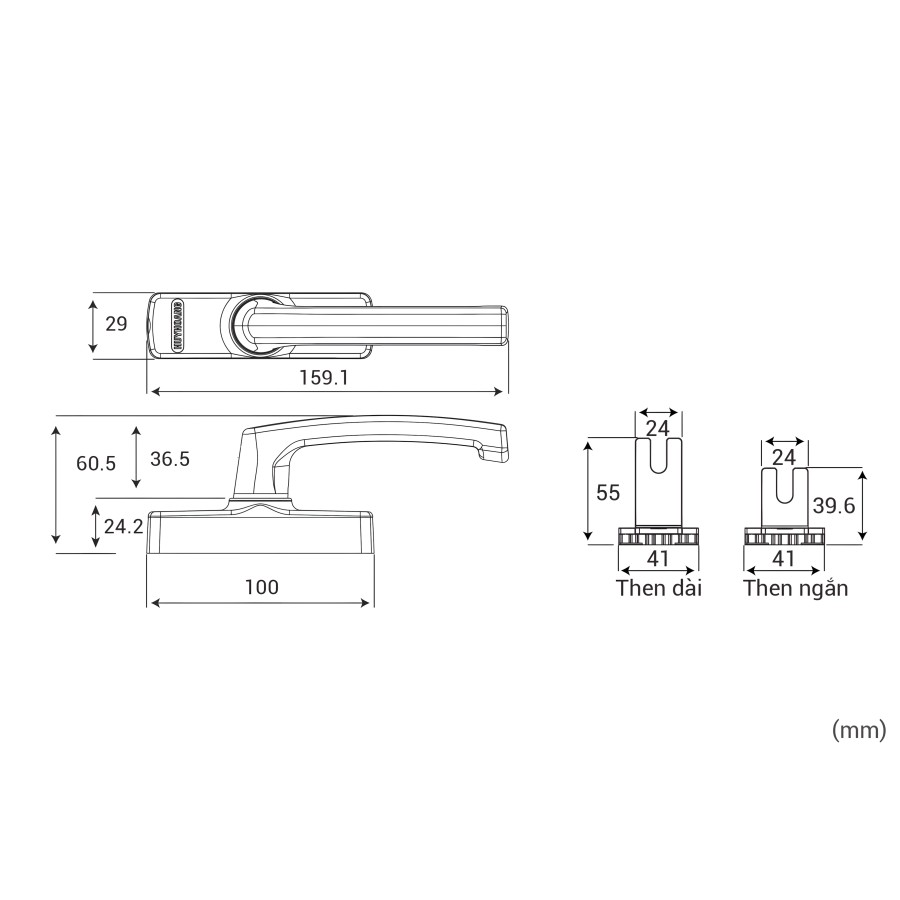 Chất liệu: Hợp kim nhôm đúc (Tay ốp, Nắp che, Thanh răng).