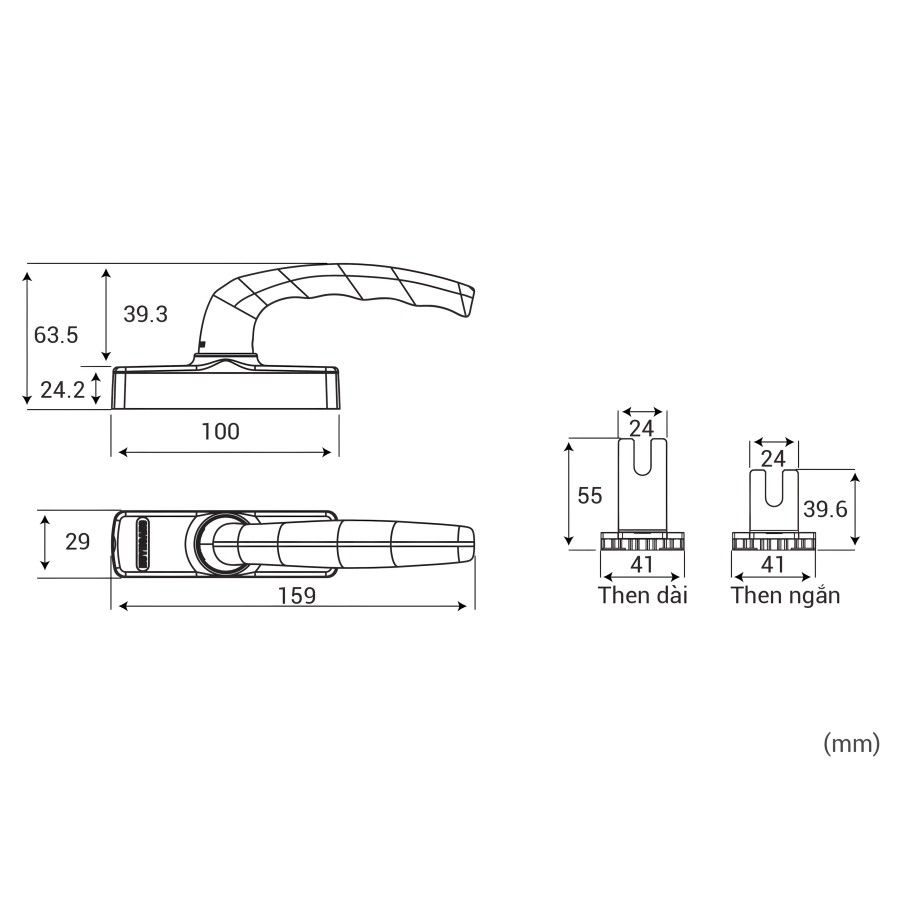 Tay nắm cửa sổ Huy Hoàng EX 88: Hợp Kim sơn tĩnh điện Ghi. Dùng cho cửa sổ mở quay/hất. Chắc chắn, thẩm mỹ, phù hợp cửa nhôm hệ 55/Xingfa.