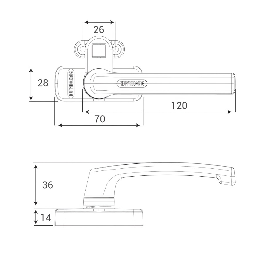 Khóa tay nắm cửa sổ Huy Hoàng AP 03 hệ Xingfa điện zi