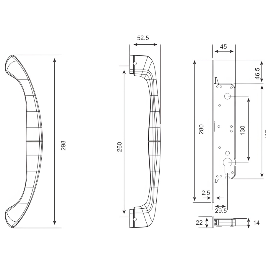 Bản vẽ Khóa tay nắm cửa trượt Huy Hoàng AP 02 Sơn trắng