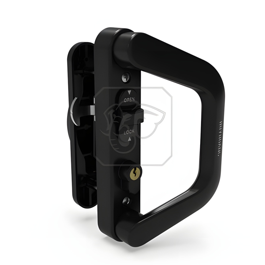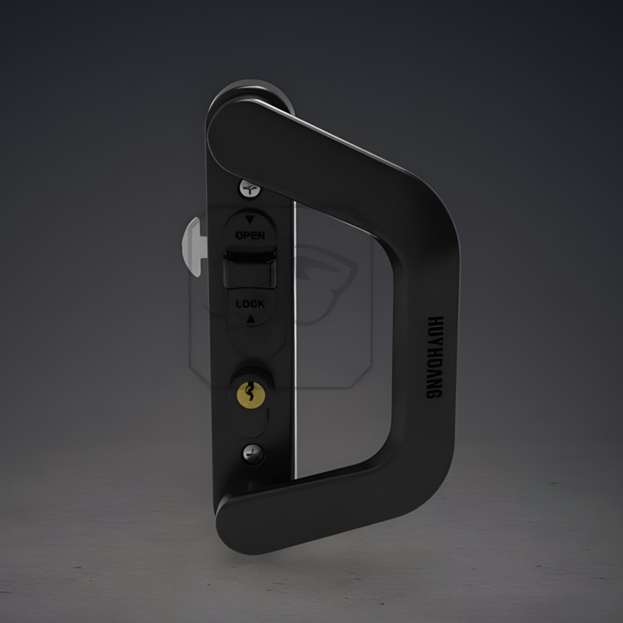 Khóa tay nắm cửa trượt Huy Hoàng AP 02: Tay nắm Hợp Kim, sơn đen bền đẹp. Chuyên dùng cho cửa nhôm hệ/Xingfa, đóng mở nhẹ nhàng, an toàn và chắc chắn.