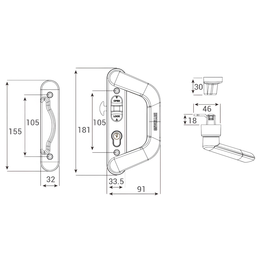 Tay ốp khóa: hợp kim nhôm ADC12, sơn tĩnh điện bền màu, chống trầy xước.