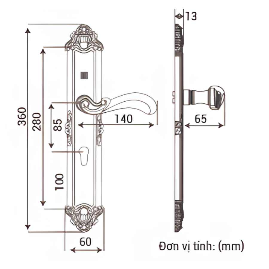 Bản vẽ kỹ thuật Khóa Tay Nắm Huy Hoàng TNHC8529D