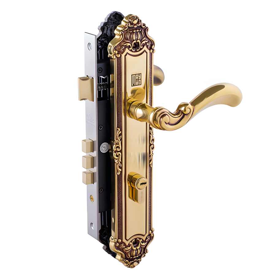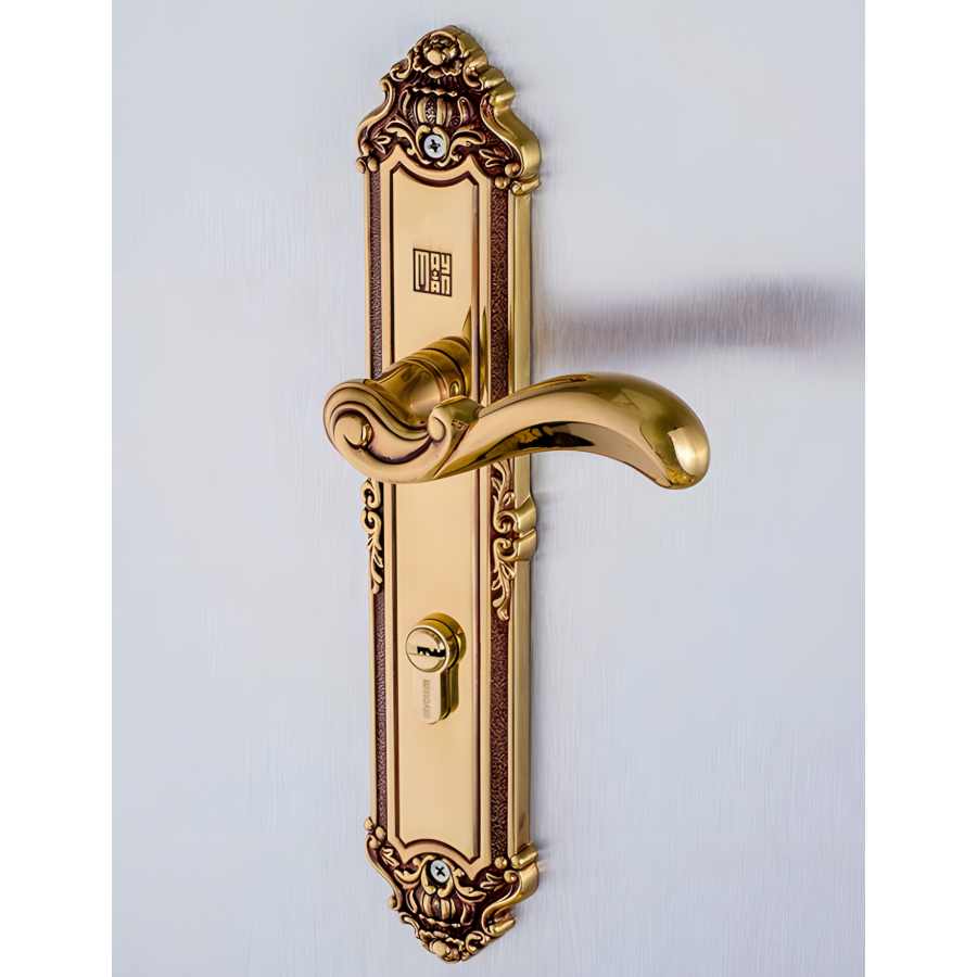 Chất liệu Đồng Thau Sang Trọng: Tay ốp khóa được sản xuất bằng đồng vàng (đồng thau), mang lại vẻ ngoài ấn tượng, sang trọng và khả năng chống ăn mòn tốt.