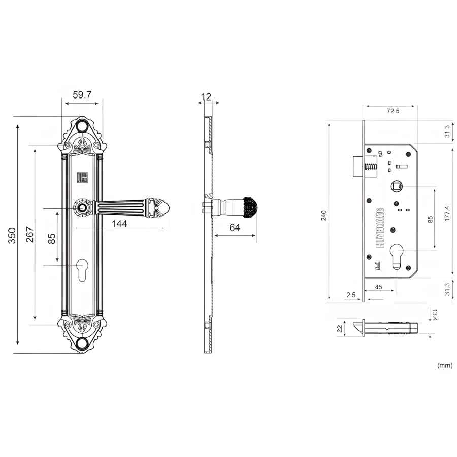 Bản vẽ kỹ thuật Khóa Tay Nắm Huy Hoàng TNHCP8526D