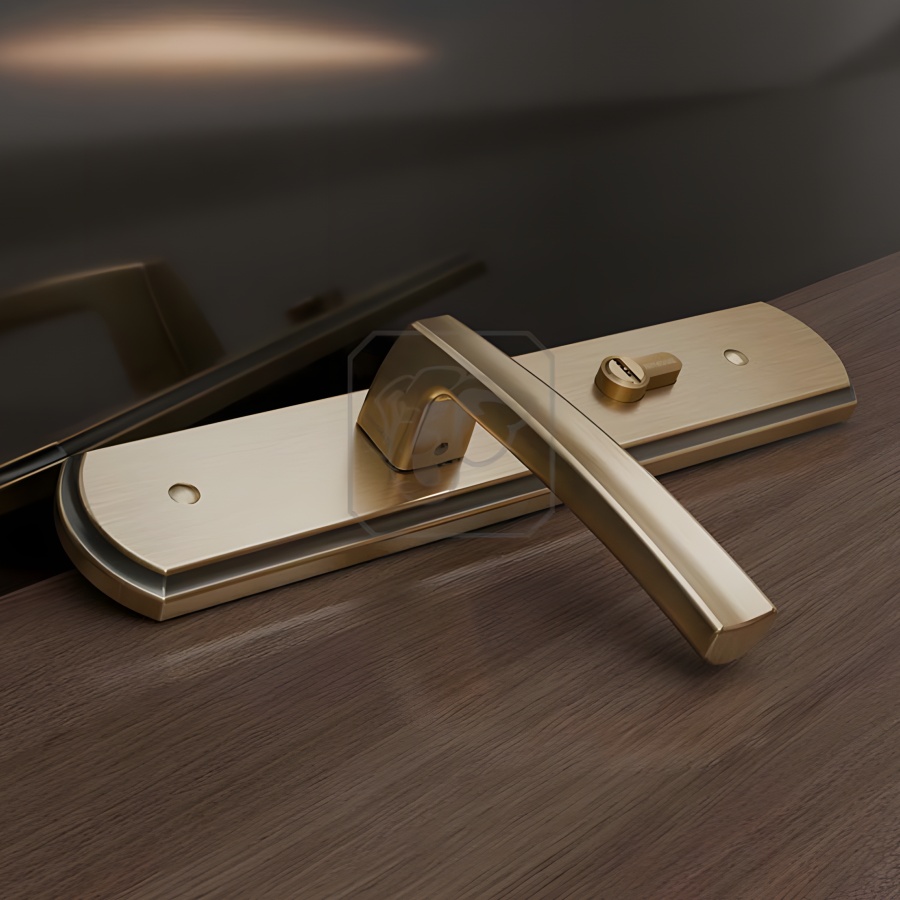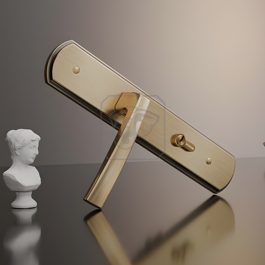 Thiết kế Sang trọng & Chất liệu Đồng Thau: Tay ốp khóa được sản xuất bằng đồng thau (brass) và xử lý bề mặt xước mờ, mang lại vẻ ngoài ấn tượng, sang trọng, phù hợp với các kiến trúc cao cấp.
