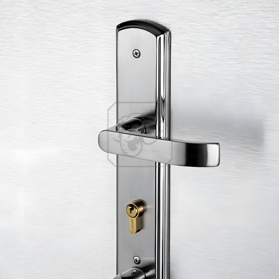 Chất liệu Inox 304 cao cấp: Tay ốp khóa và ốp phụ được sản xuất bằng vật liệu Inox 304 (Thép không gỉ), mang lại khả năng chống gỉ sét, chống ăn mòn tuyệt đối và vẻ ngoài hiện đại, bền bỉ.