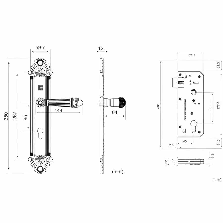 Bản vẽ kỹ thuật Khóa Tay Nắm Huy Hoàng TNHC8526D