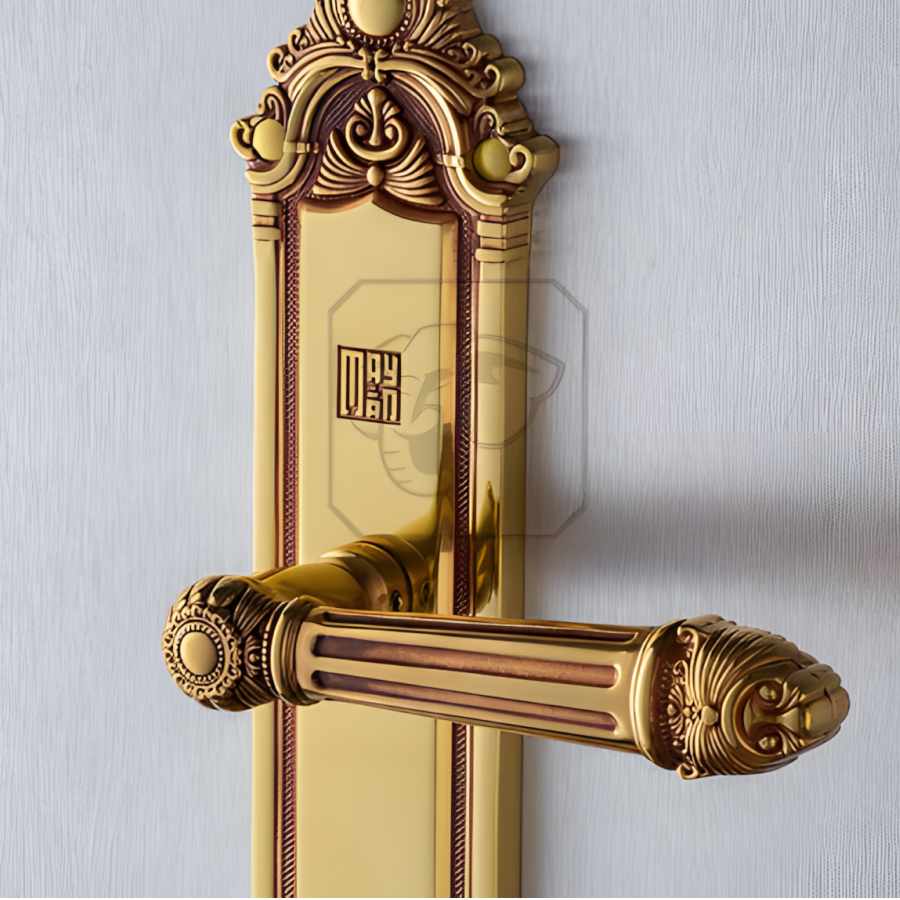 Chất liệu Đồng Thau Sang Trọng: Tay ốp khóa được sản xuất bằng đồng vàng (đồng thau), mang lại vẻ ngoài ấn tượng, sang trọng và khả năng chống ăn mòn tốt.