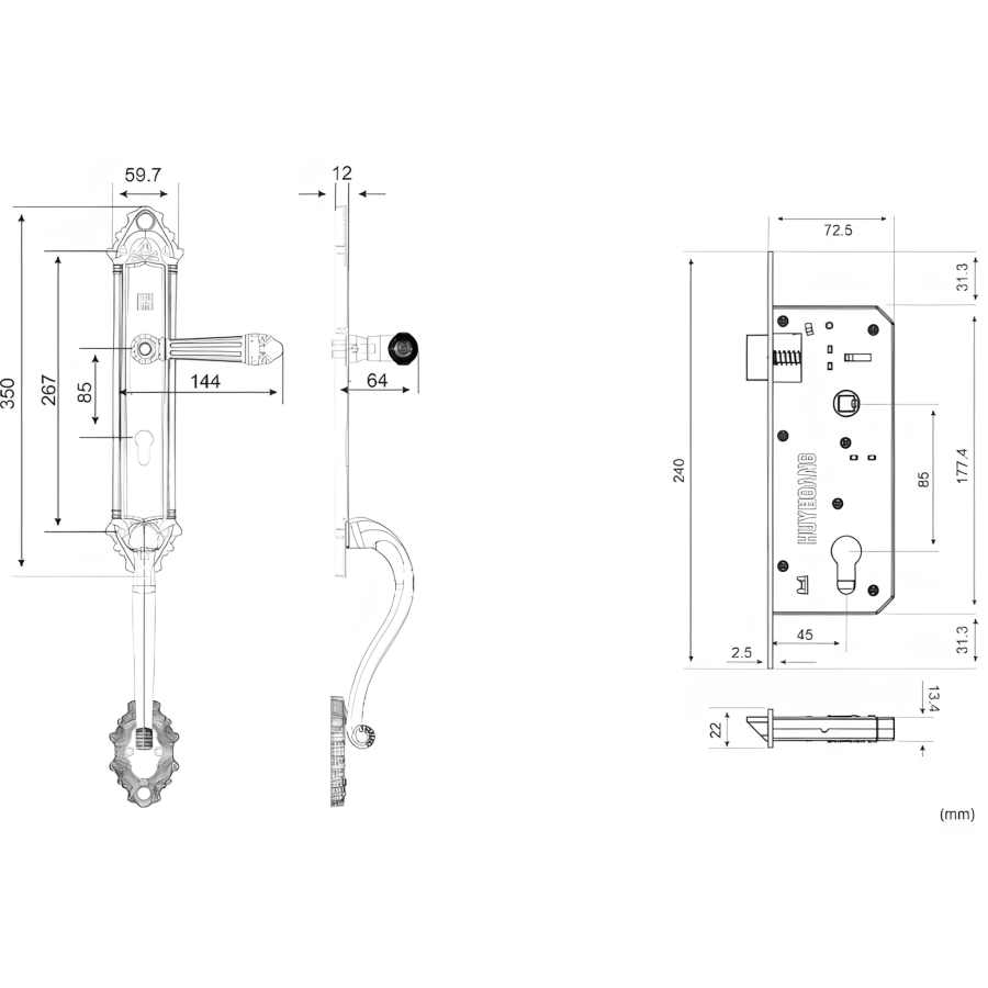Bản vẽ kỹ thuật Khóa Tay Nắm Huy Hoàng TNHCP8526DS