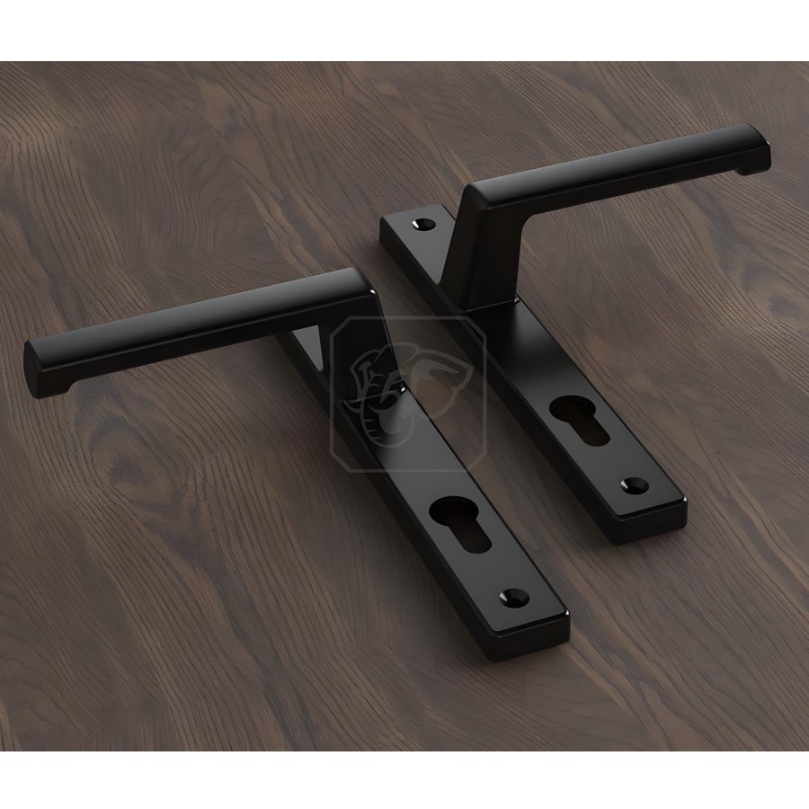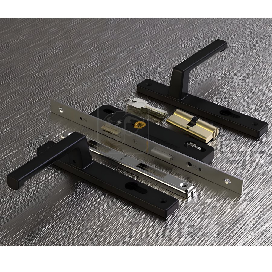 Thiết kế Nhôm Đúc & Sơn Tĩnh Điện Đen: Tay ốp khóa được sản xuất bằng hợp kim ALDC-2, được sơn tĩnh điện đen, mang lại vẻ ngoài hiện đại, mạnh mẽ. Thân khóa được làm bằng nhôm đúc nguyên khối, tăng cường độ bền và khả năng chống ăn mòn.