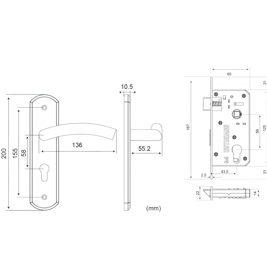Khóa tay nắm Huy Hoàng SS 5810: Tay ốp Inox 304, màu Inox mờ (Trắng Bạc). Thân khóa 58mm, ổ đồng 3 chìa vi tính. Chống gỉ, phù hợp cửa thông phòng/WC.