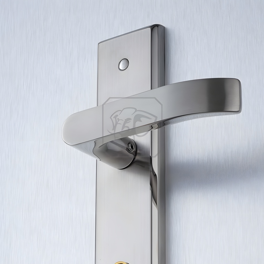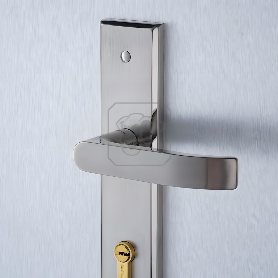Chất liệu Inox 304 cao cấp: Tay ốp khóa và ốp phụ được sản xuất bằng vật liệu Inox 304 (Thép không gỉ), mang lại khả năng chống gỉ sét, chống ăn mòn tuyệt đối và vẻ ngoài hiện đại, bền bỉ. Mặt thân khóa cũng được làm bằng Inox.