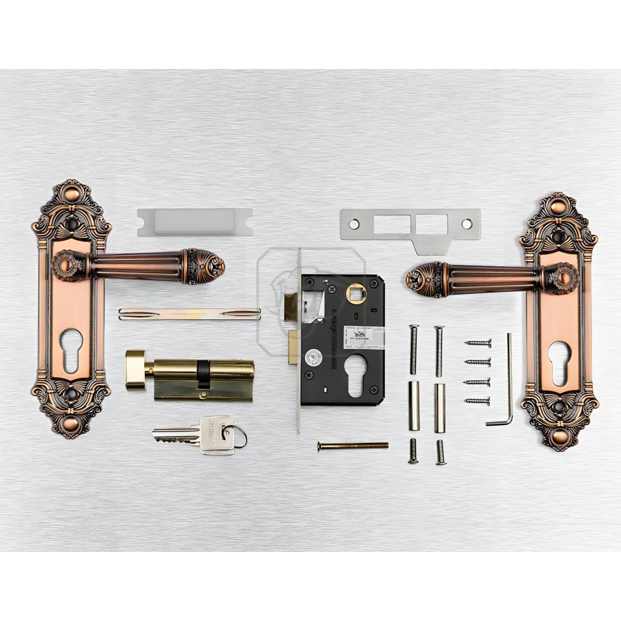 Vật liệu và Màu sắc: Tay ốp khóa được sản xuất bằng hợp kim ZDC-2, mạ bề mặt đồng giả cổ, mang lại vẻ ngoài ấm cúng và cổ điển.