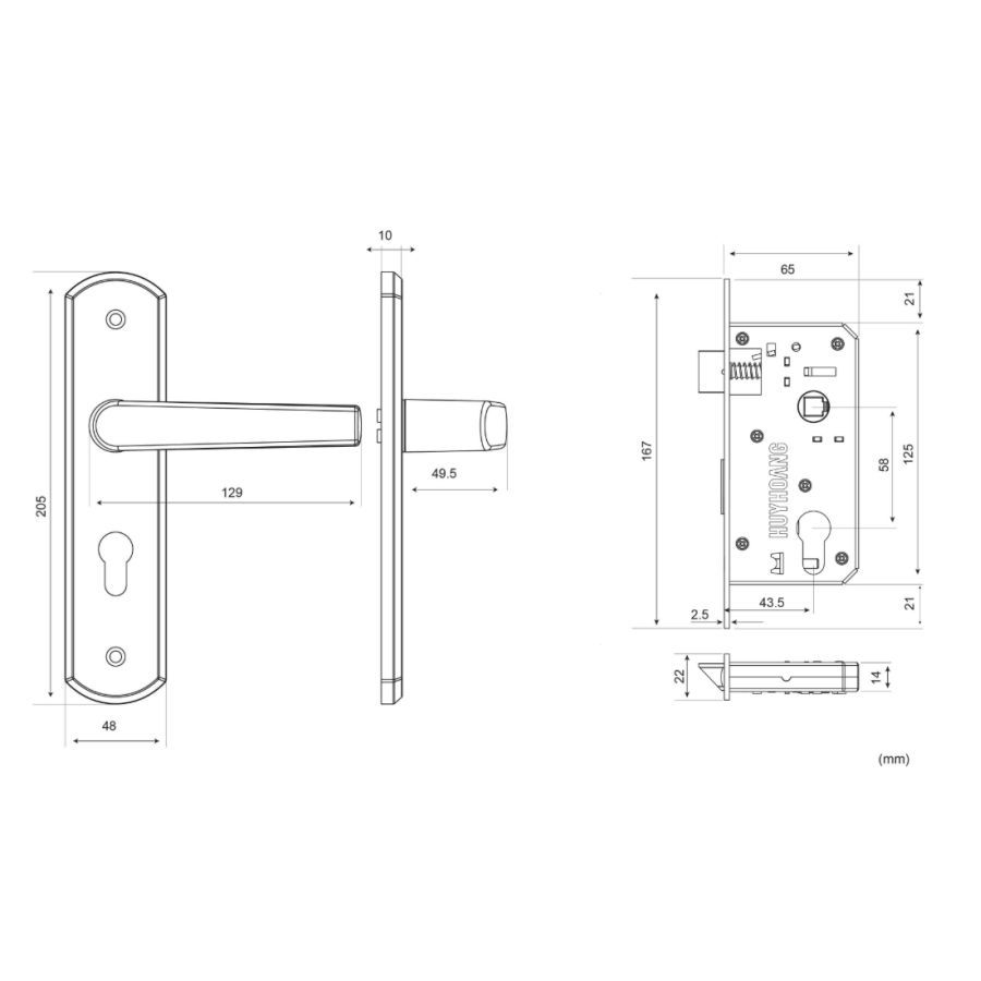 Bản vẽ Khóa Tay Nắm Huy Hoàng EX 5882