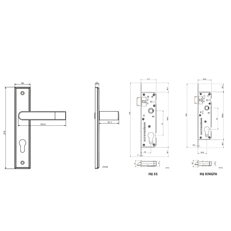 Chuyên dụng cho Nhôm Hệ Đa Dạng: Khóa có 2 phiên bản thân phù hợp với các loại nhôm hệ thông dụng (Hệ 55, Hệ XingFa) và 2 phiên bản ốp phụ phù hợp cho cửa 1 cánh hoặc 2 cánh.