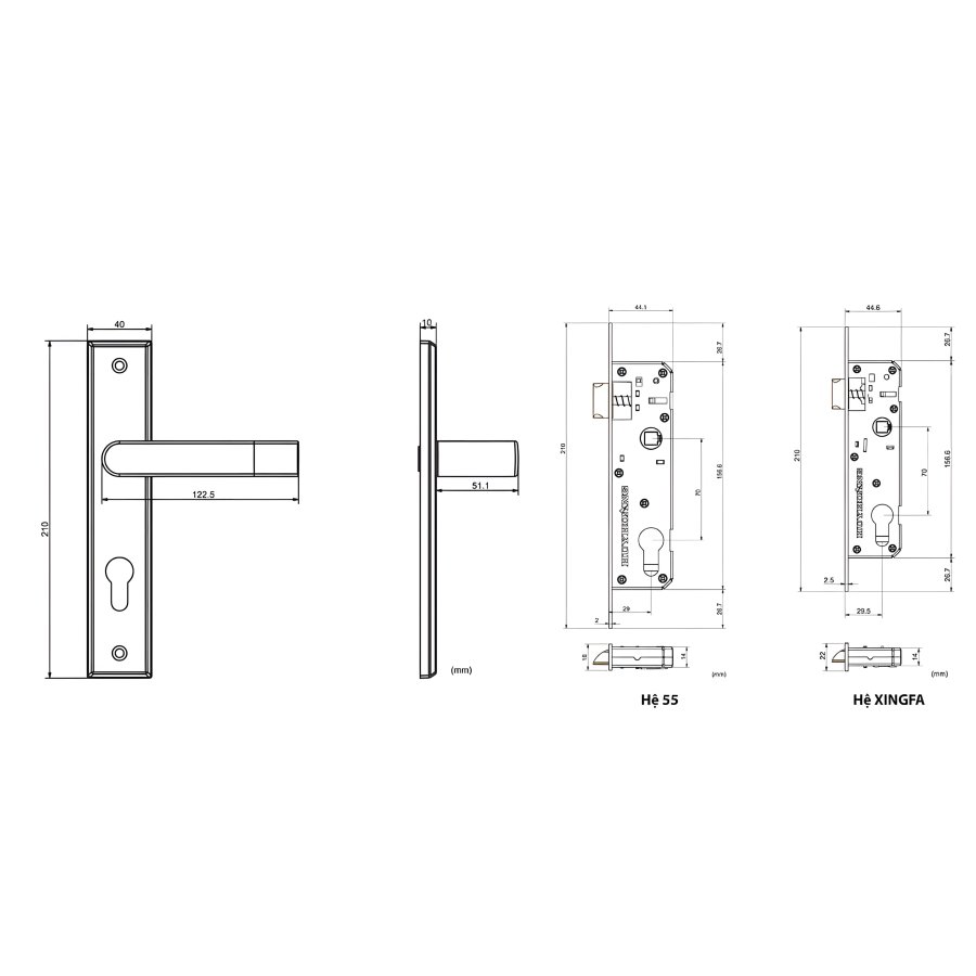 Chuyên dụng cho Nhôm Hệ Đa Dạng: Khóa có 2 phiên bản thân phù hợp với các loại nhôm hệ thông dụng (Hệ 55, Hệ XingFa) và 2 phiên bản ốp phụ phù hợp cho cửa 1 cánh hoặc 2 cánh.