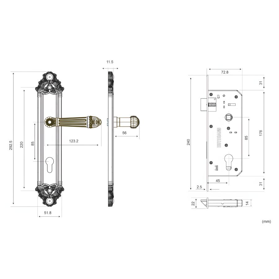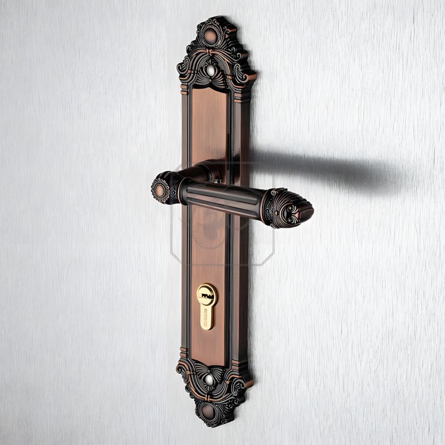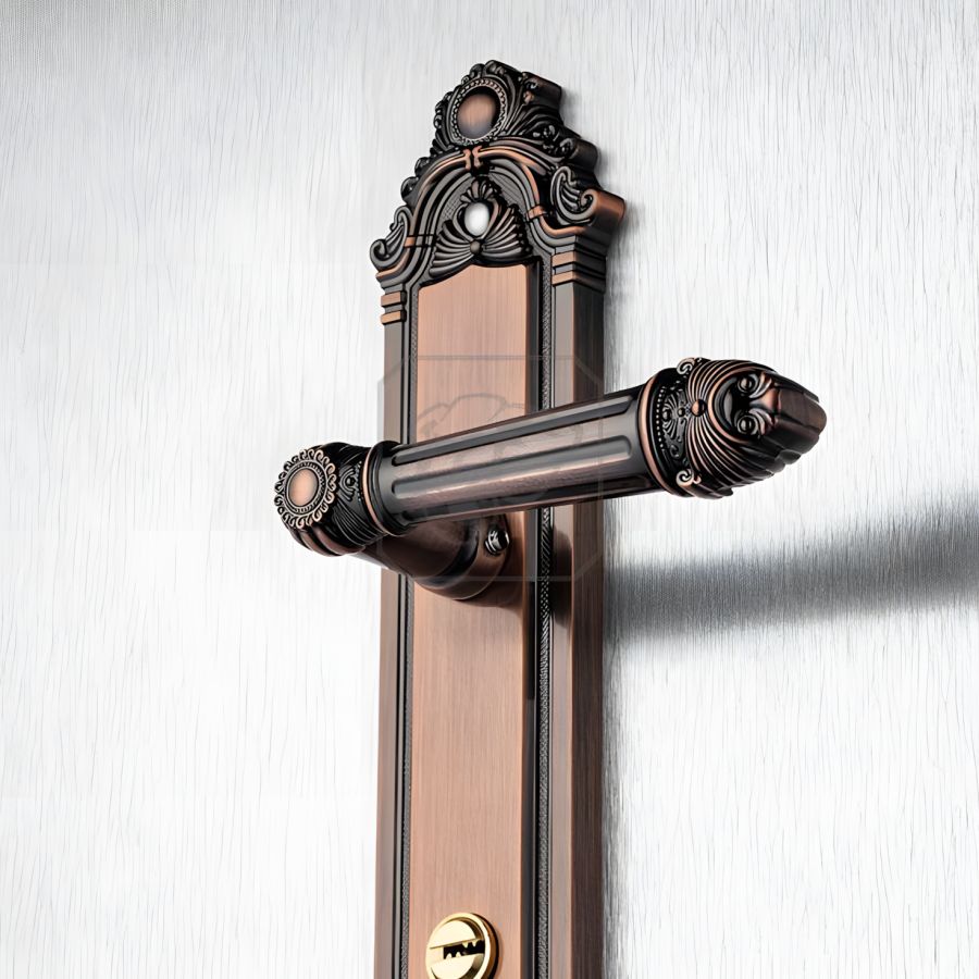 Thiết kế Đồng Giả Cổ Sang Trọng: Tay ốp khóa được sản xuất bằng hợp kim ZDC-2 và được mạ đồng giả cổ, mang lại vẻ ngoài cổ điển, ấn tượng, phù hợp với các kiến trúc truyền thống.