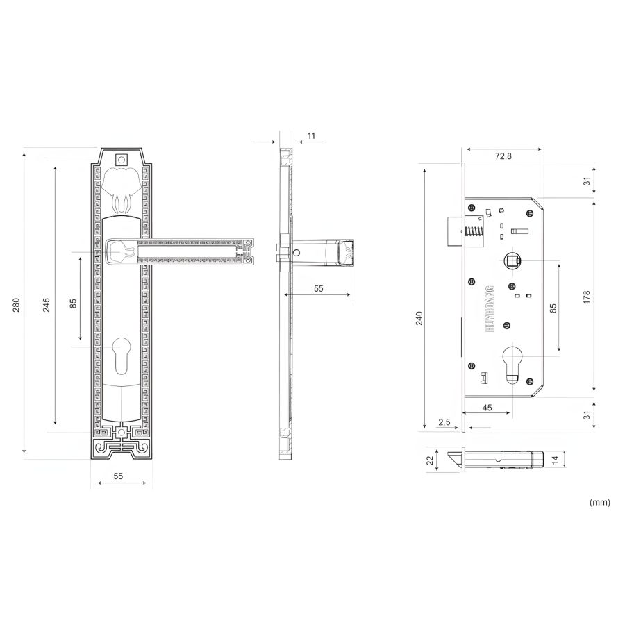 Bản vẽ Khóa Tay Nắm Huy Hoàng EX 8528