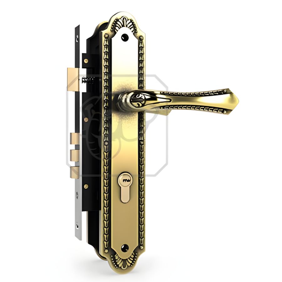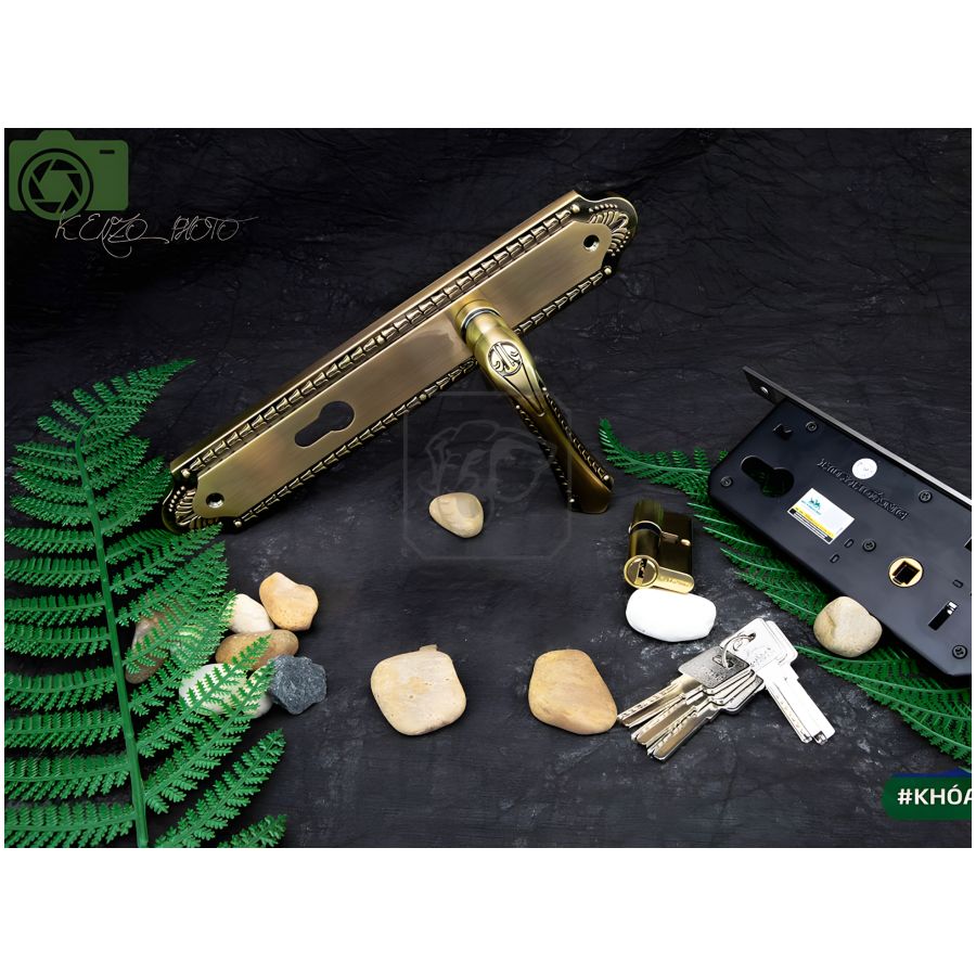 Thiết kế Đồng Giả Cổ Sang Trọng: Tay ốp khóa được sản xuất bằng hợp kim ZDC-2 và được mạ đồng giả cổ, mang lại vẻ ngoài cổ điển, ấn tượng, phù hợp với các kiến trúc truyền thống.