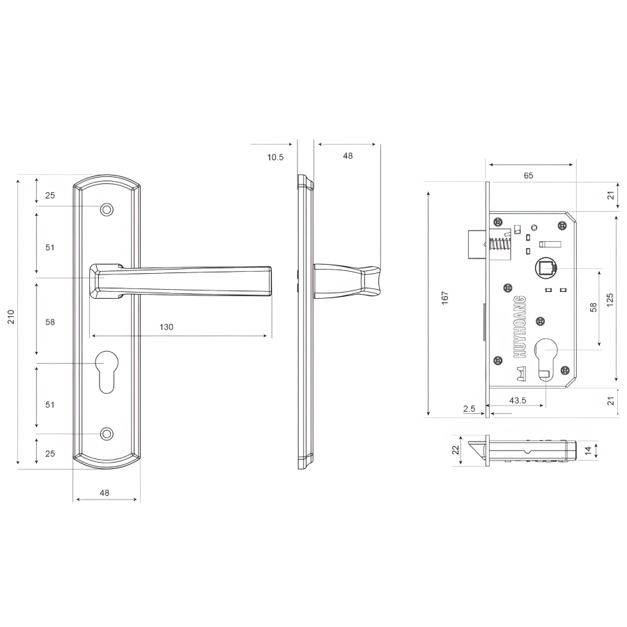 Bản vẽ Khóa tay nắm Huy Hoàng SS 5868 Inox