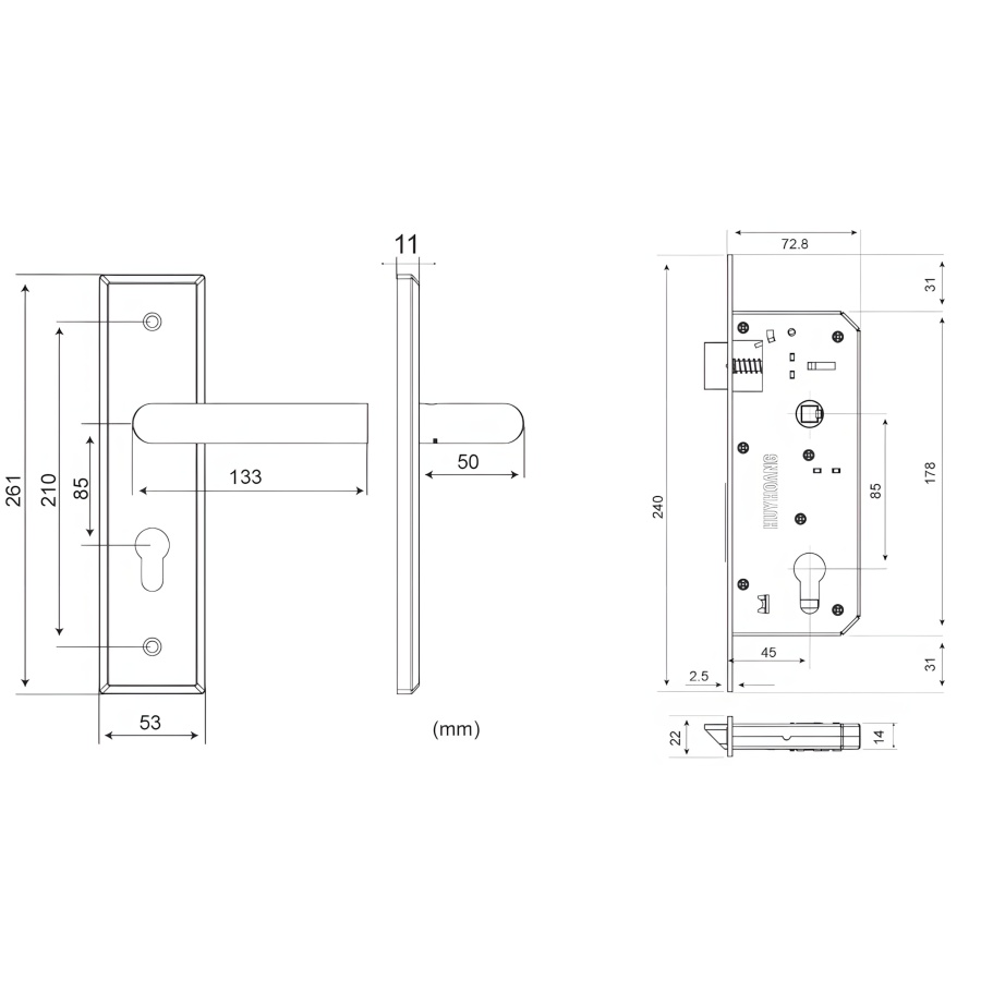 Bản vẽ Khóa tay nắm Huy Hoàng SS 8534