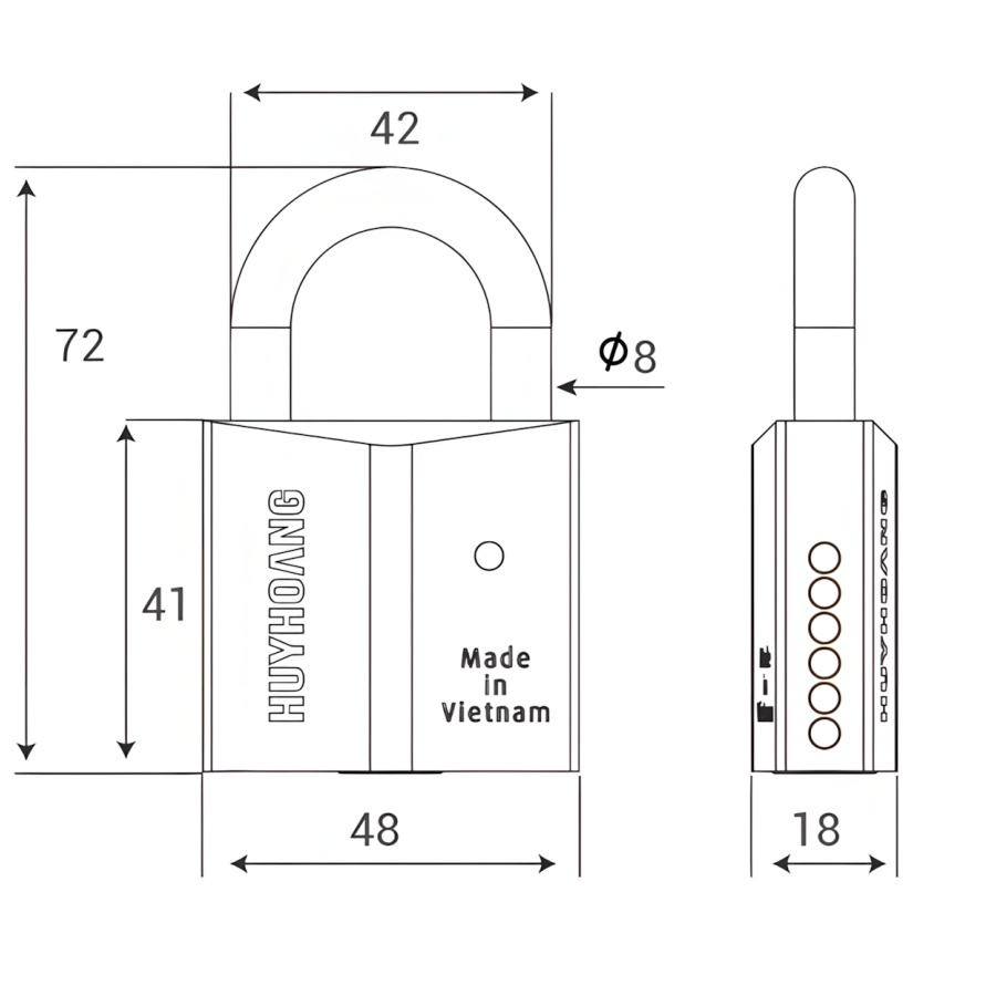 Bản vẽ Khoá treo bấm Huy Hoàng HC 8