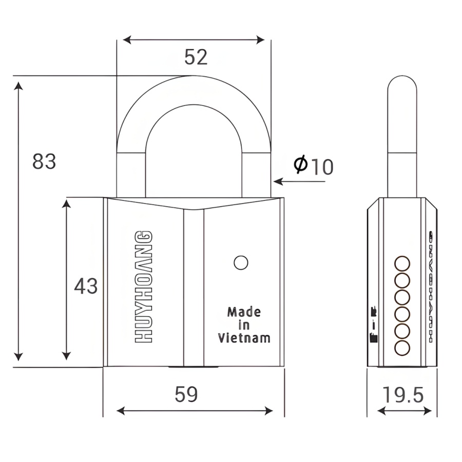 Khoá treo bấm Huy Hoàng Titanium 10