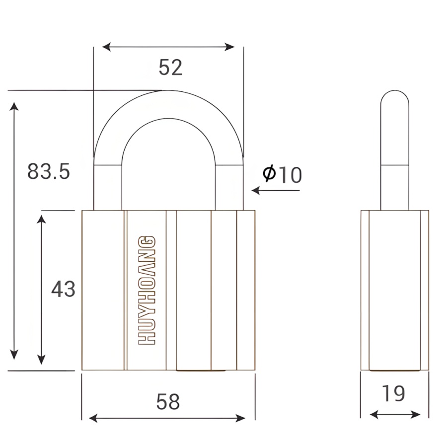 Bản vẽ Khoá treo chìa Huy Hoàng HC 10