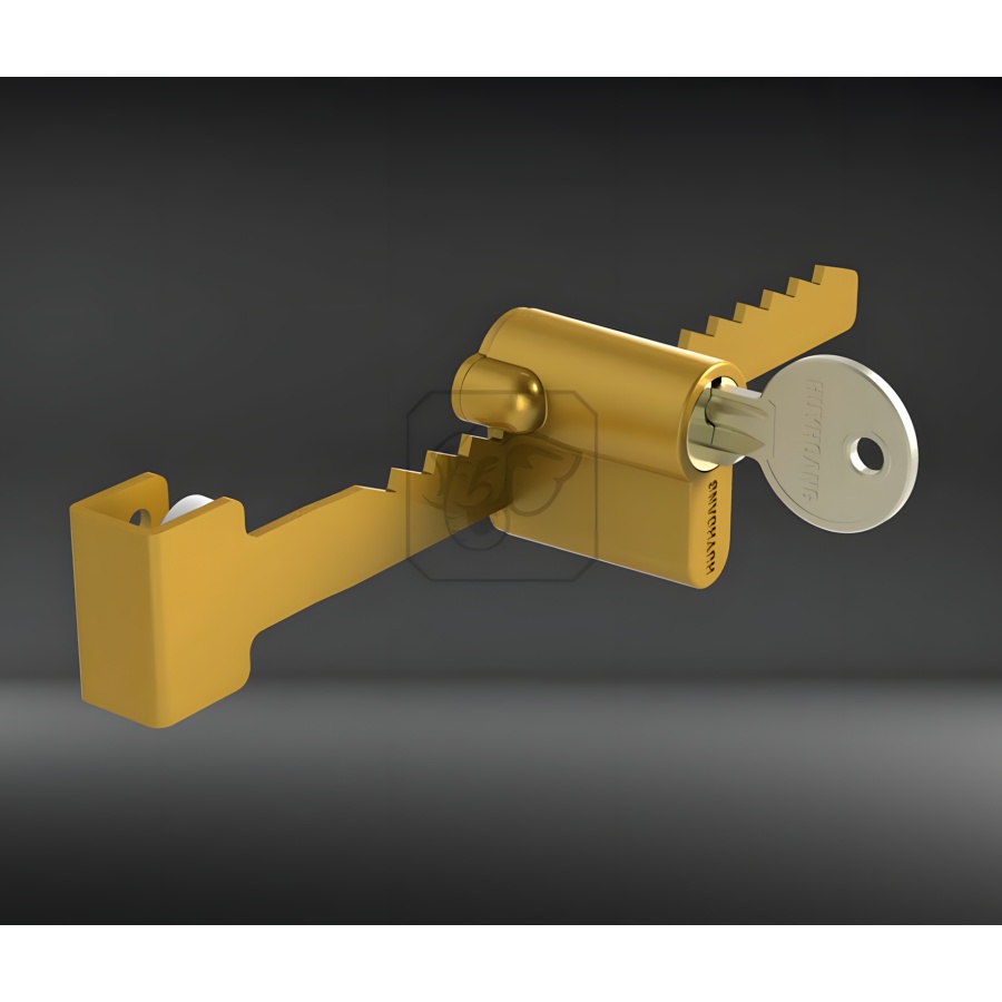 Sử dụng: Lắp đặt ruột khóa này vào thân khóa cửa. Dùng chìa vi tính để mở khóa ngoài (chìa có thể cắm theo hai chiều). Dùng chốt vặn để khóa cửa nhanh chóng từ bên trong.
