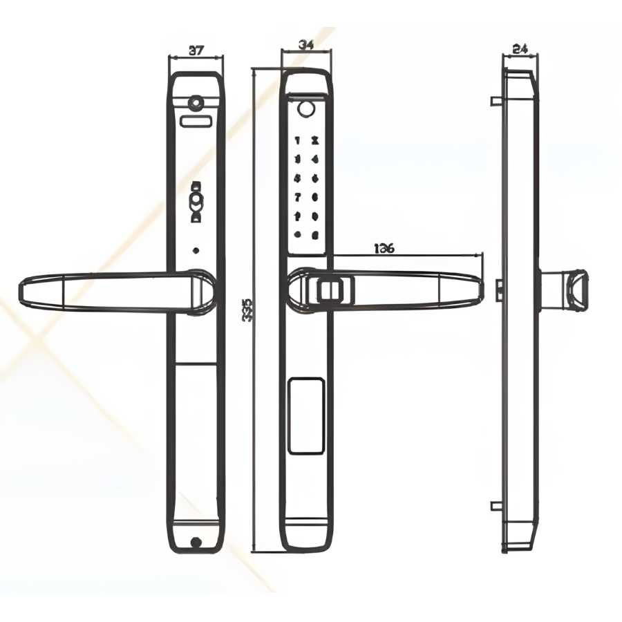 Kích thước thân khóa ngoài (RxCxD): 37 x 325 x 21.5 mm