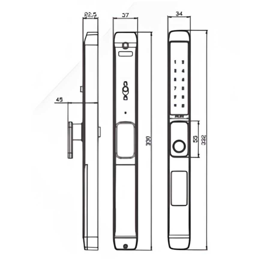 Bản vẽ kỹ thuật Khóa Vân Tay Cửa Nhôm Kassler KL-599TN Grey