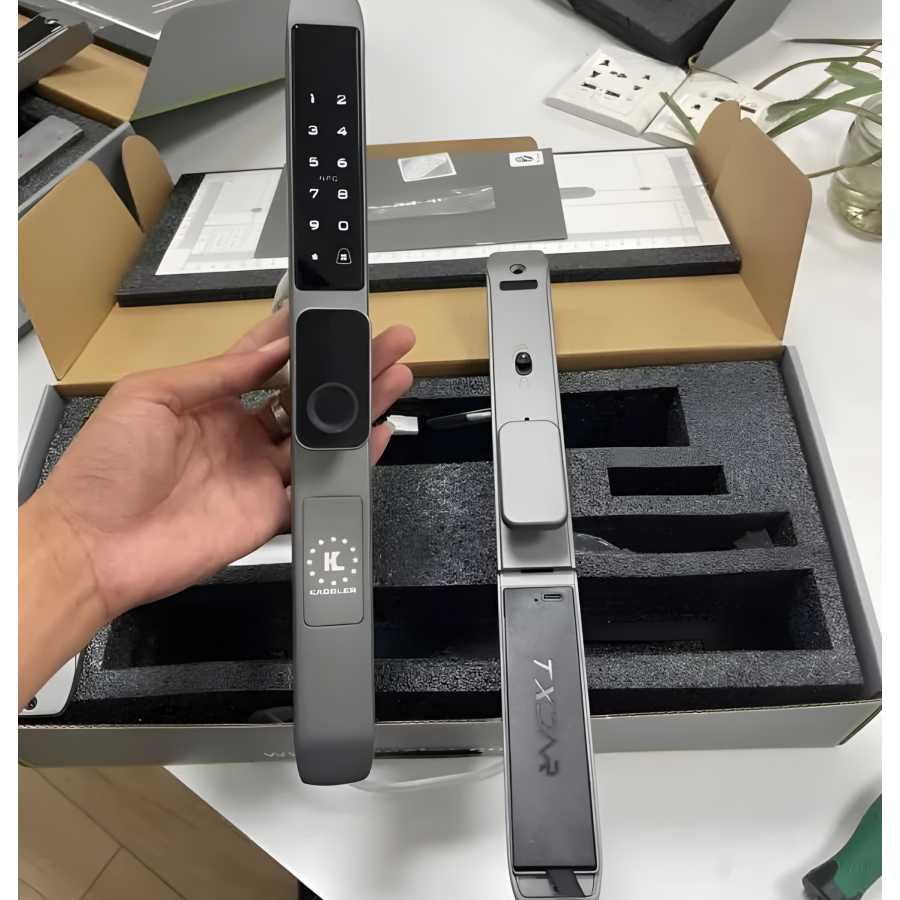 Khóa vân tay Kassler KL-599TD Plus: Vân tay 2 mặt, mở bằng App/Vân tay/Mã số/Thẻ từ/Chìa cơ. Chuyên dụng cho cửa nhôm, chống nước tuyệt đối IP67.