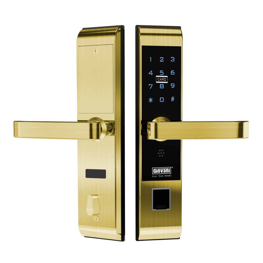 Khóa vân tay Giovani GSL-630G thông minh, tích hợp vân tay, mã số, thẻ từ, chìa cơ. Thiết kế hiện đại, an toàn tuyệt đối, mang lại sự tiện nghi và bảo mật t...