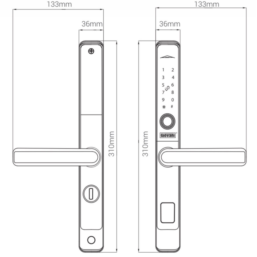 Bản vẽ Khóa Vân Tay Thông Minh Giovani GSL-582B