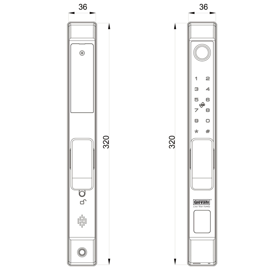 Bản vẽ Khóa Vân Tay Thông Minh Giovani GSL-F208B